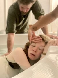 The warm water of the tub brought some relief. I floated in the big tub’s real and metaphorical waves, trying to anchor to the porcelain. Since I closed my eyes, I had little sense of whose support hands were whose. I heard voices of affirmation. I was simply grateful for any and all souls there.