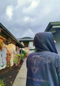 At home, contractions increased randomly. I put on my “The Revolution Will Be Midwifed” sweatshirt that I got from my childhood friend and midwife Kathleen years ago. I had my go-bags on standby.